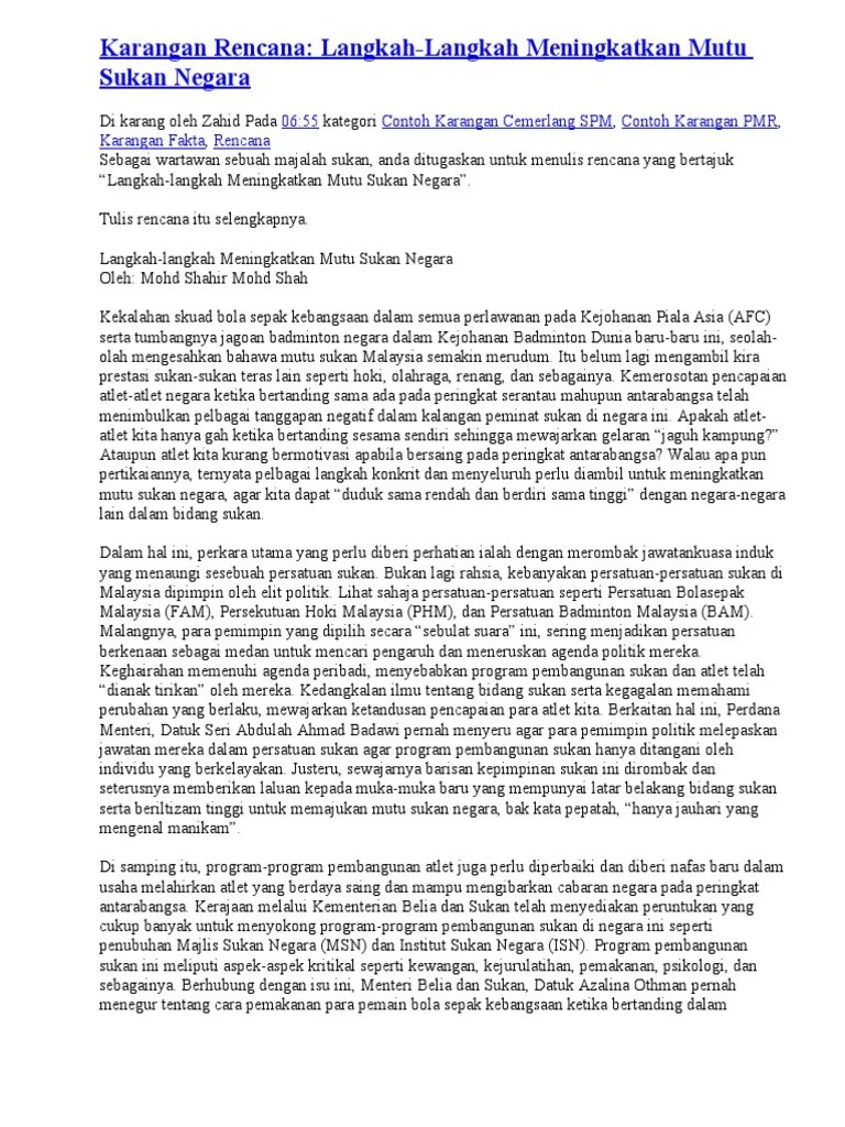 Contoh karangan terbaik berita pt3 spm yang terbaik bahasa melayu? Dalam dunia yang dilingkari dengan kemajuan sains dan . Contoh ayat menggunakan perkataan bermula dalam bahasa melayu. Anda dicadang menggunakan 1 jam 30 minit untuk .
